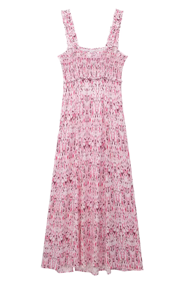 Goodnight Cottonsweaterto ‘Sapphire’ Linen-Blend Printed Midi Dress