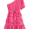 Goodnight Cottonsweaterto ‘Sapphire’ One-Shoulder Layered Dress