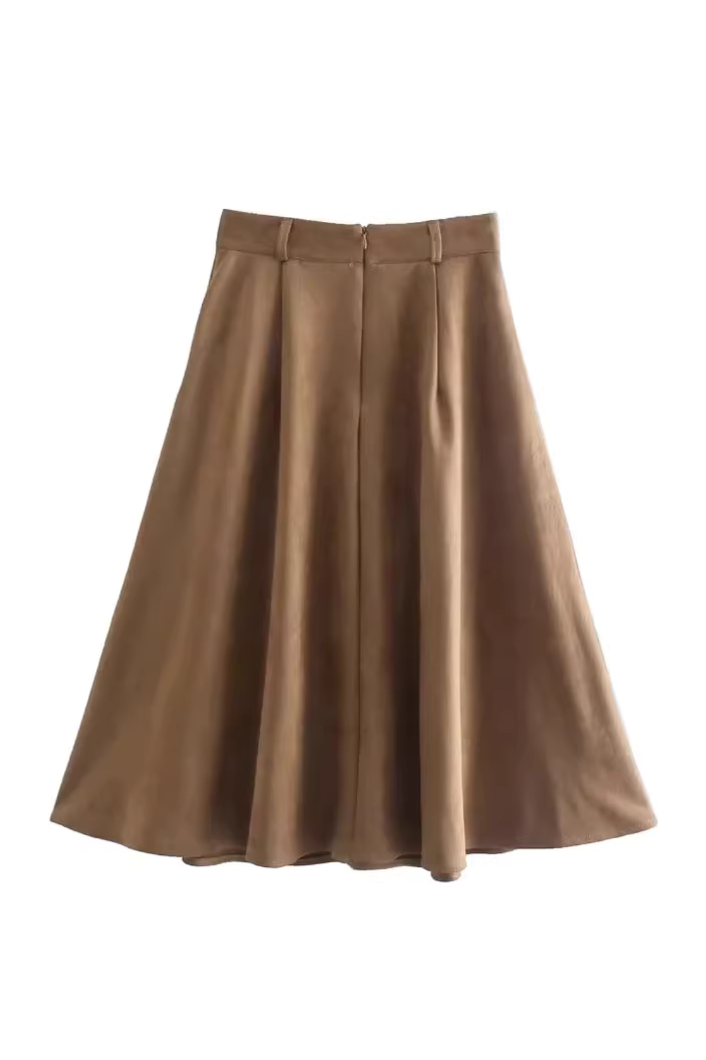 Goodnight Cottonsweaterto ‘Sapphire’ Pleated Faux Suede Skirt