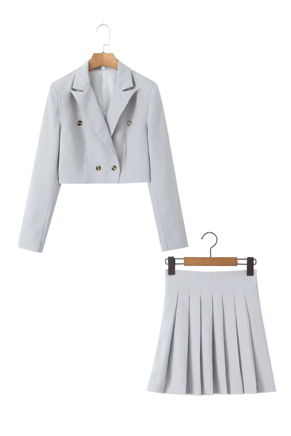 Goodnight Cottonsweaterto ‘Sapphire’ Short Suit Blazer & Pleated Skirt Set
