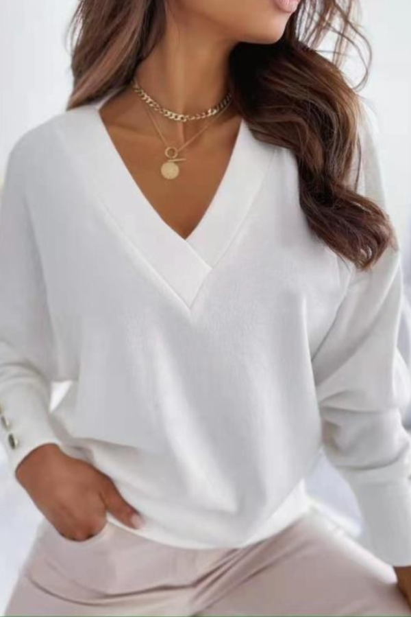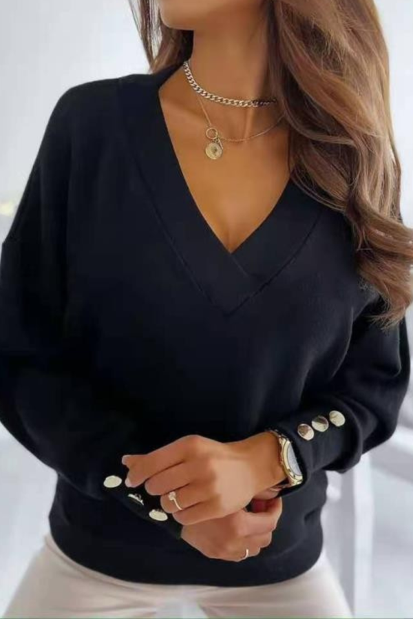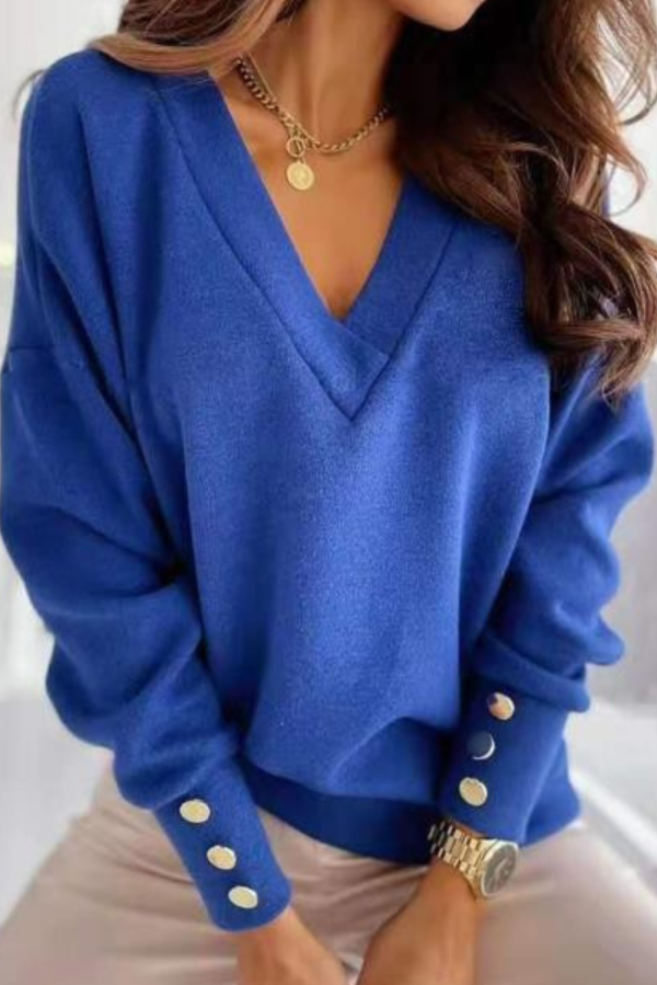 Goodnight Cottonsweaterto ‘Sapphire’ V-neck Buttoned Batwing Sleeve Top (4 Colors)