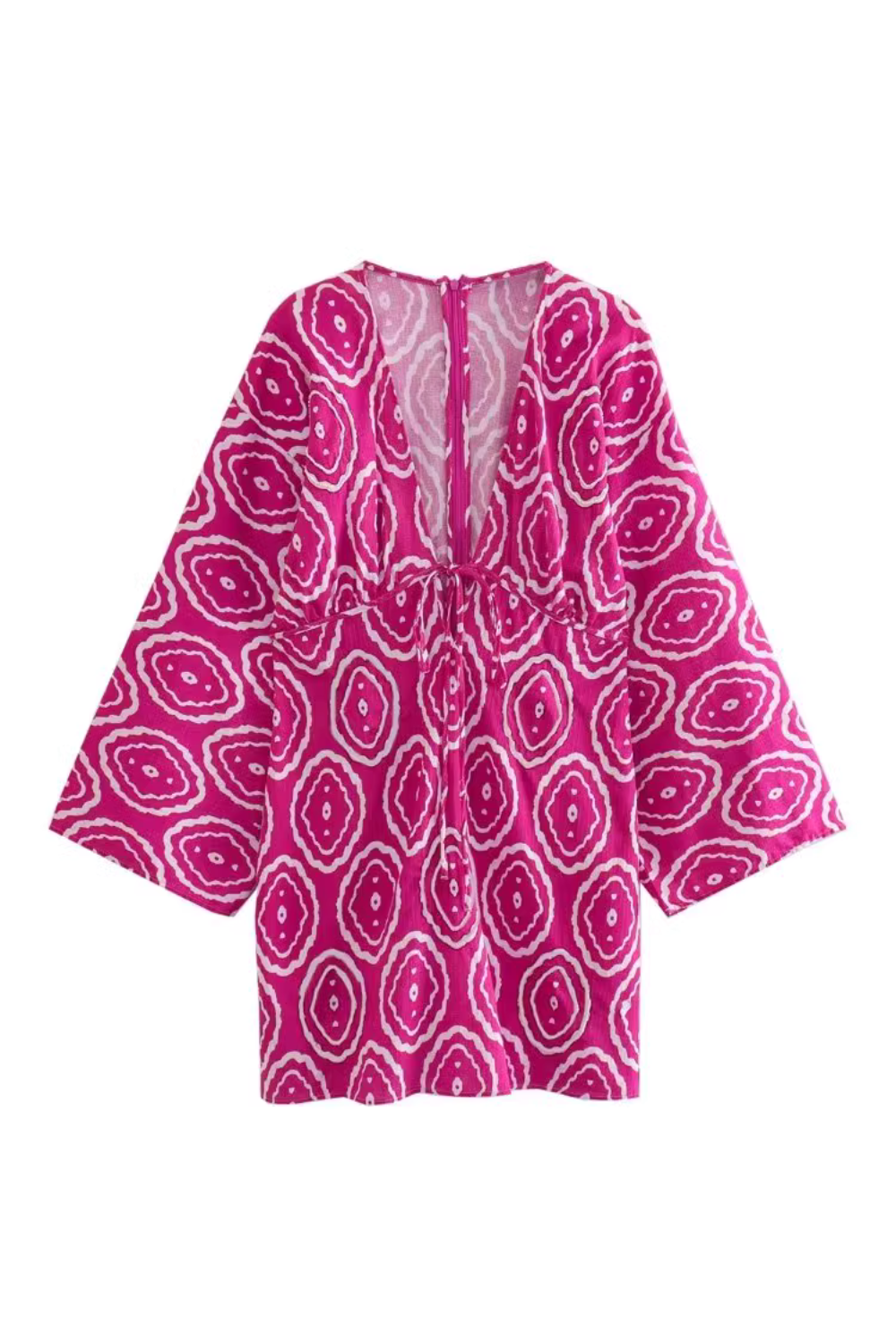 Goodnight Cottonsweaterto ‘Sapphire’ V-Neck Printed Short Dress
