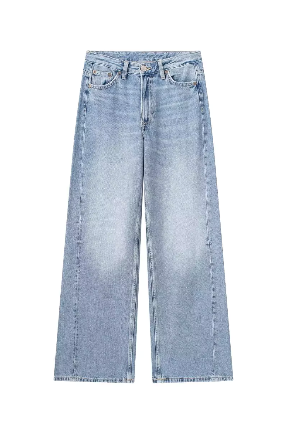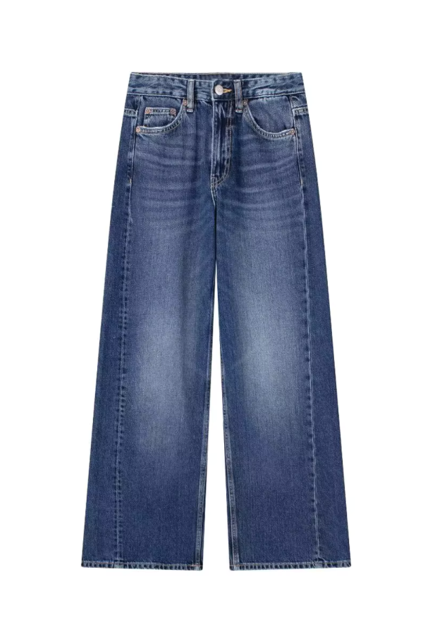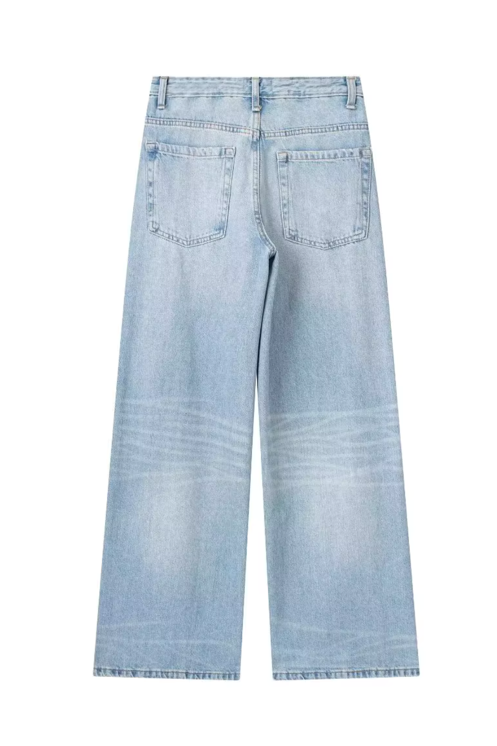 Goodnight Cottonsweaterto ‘Sapphire’ Wide-Leg Washed Jeans (4 Colors)