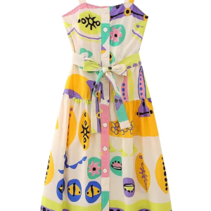 Sapphire’ Retro Print Sleeveless Midi Dress